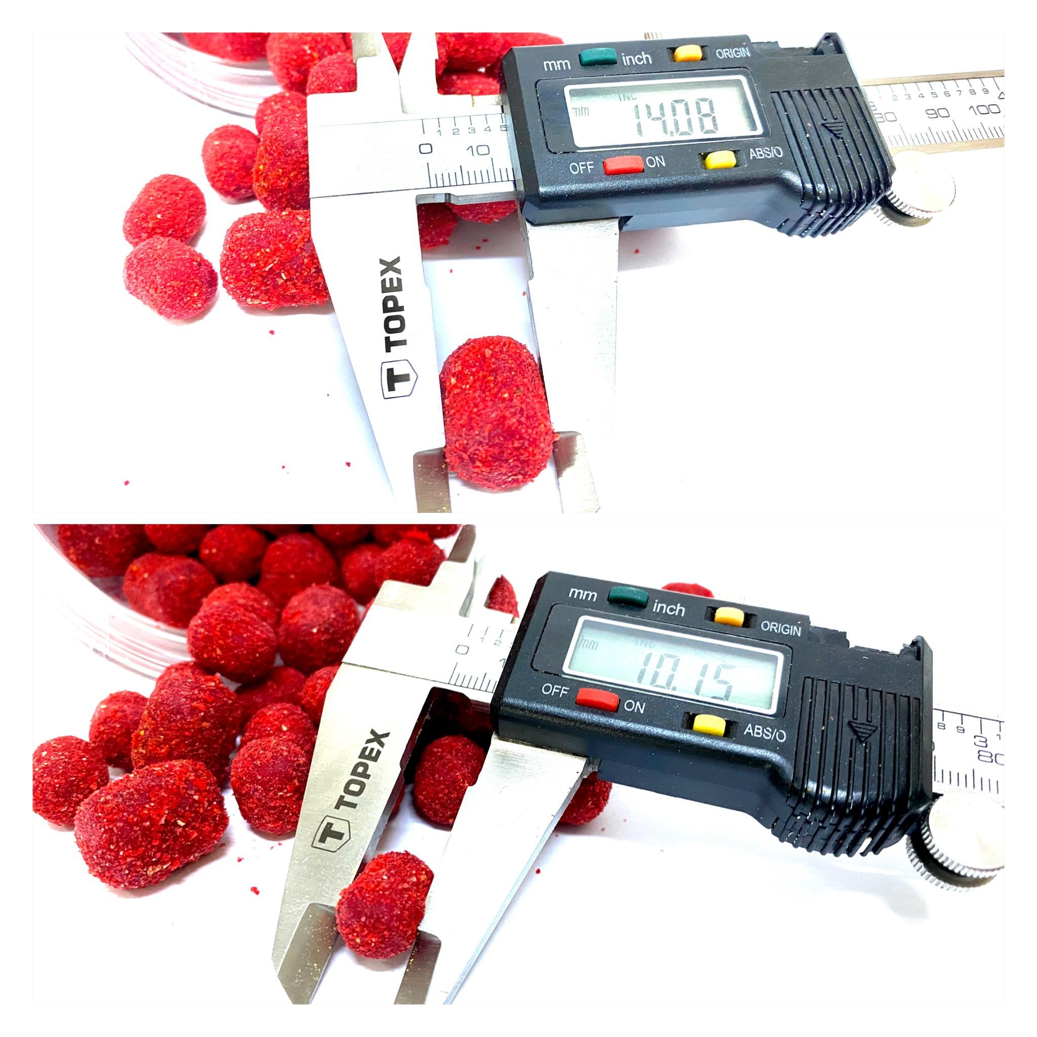 În flacon se găsesc două dimensiuni de boilies-uri dumbell semisolubile: