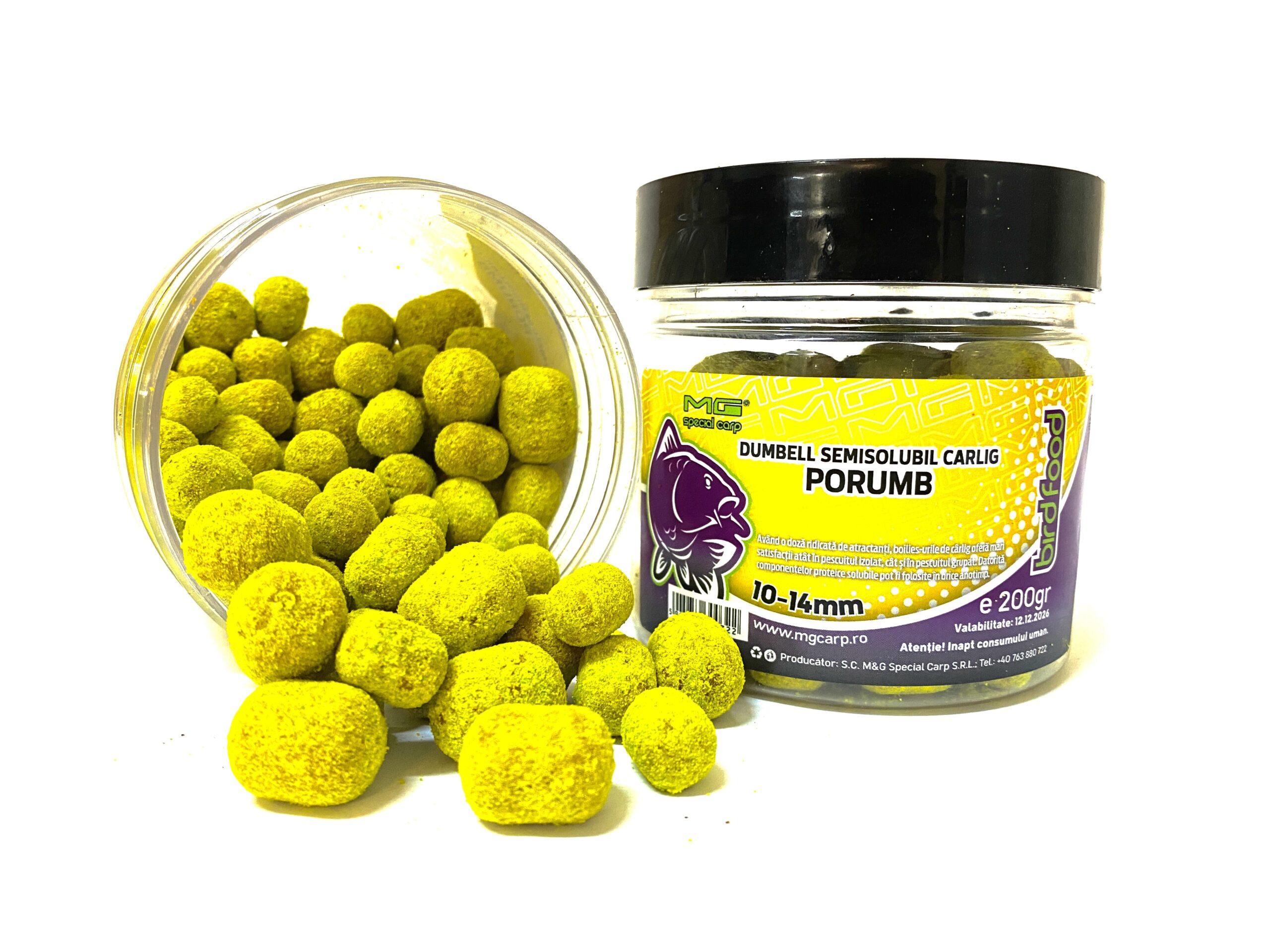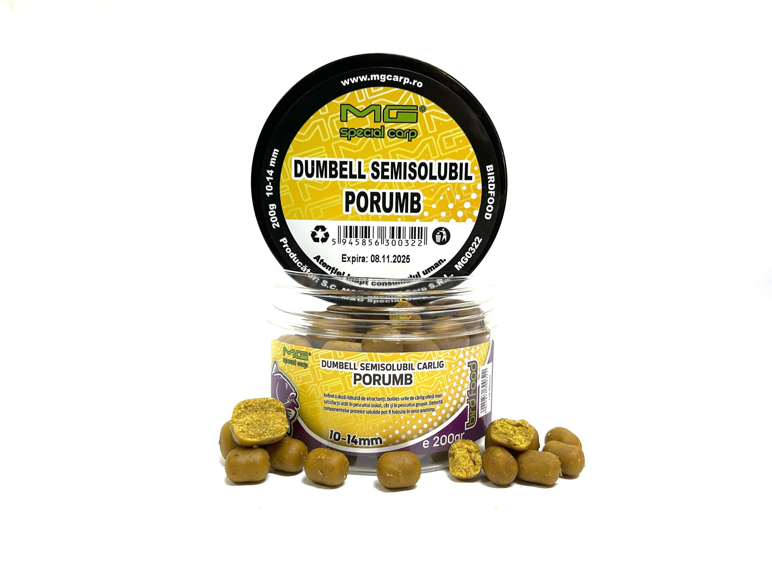 Boilies-urile Dumbell Semisolubile de Cârlig oferă mari satisfacții atât în pescuitul izolat, cât și în pescuitul grupat. Realizate dintr-un mix de făinuri cerealiere de calitate superioară, acestea au o aromă intensă ce poate fi ușor detectată de crapi și o valoare nutritivă foarte ridicată, fiind echilibrate proteic. Partea lichidă din care sunt realizate boilies-urile conține ou și componente de înaltă calitate, fiind bogată în aminoacizi esențiali și stimulatori de hrănire. Aceste boiliesuri au oferit un randament excelent atât în Delta Dunării, cât și pe lacuri sălbatice, indiferent de anotimp, datorită ingredientelor de calitate superioară din care sunt realizate.